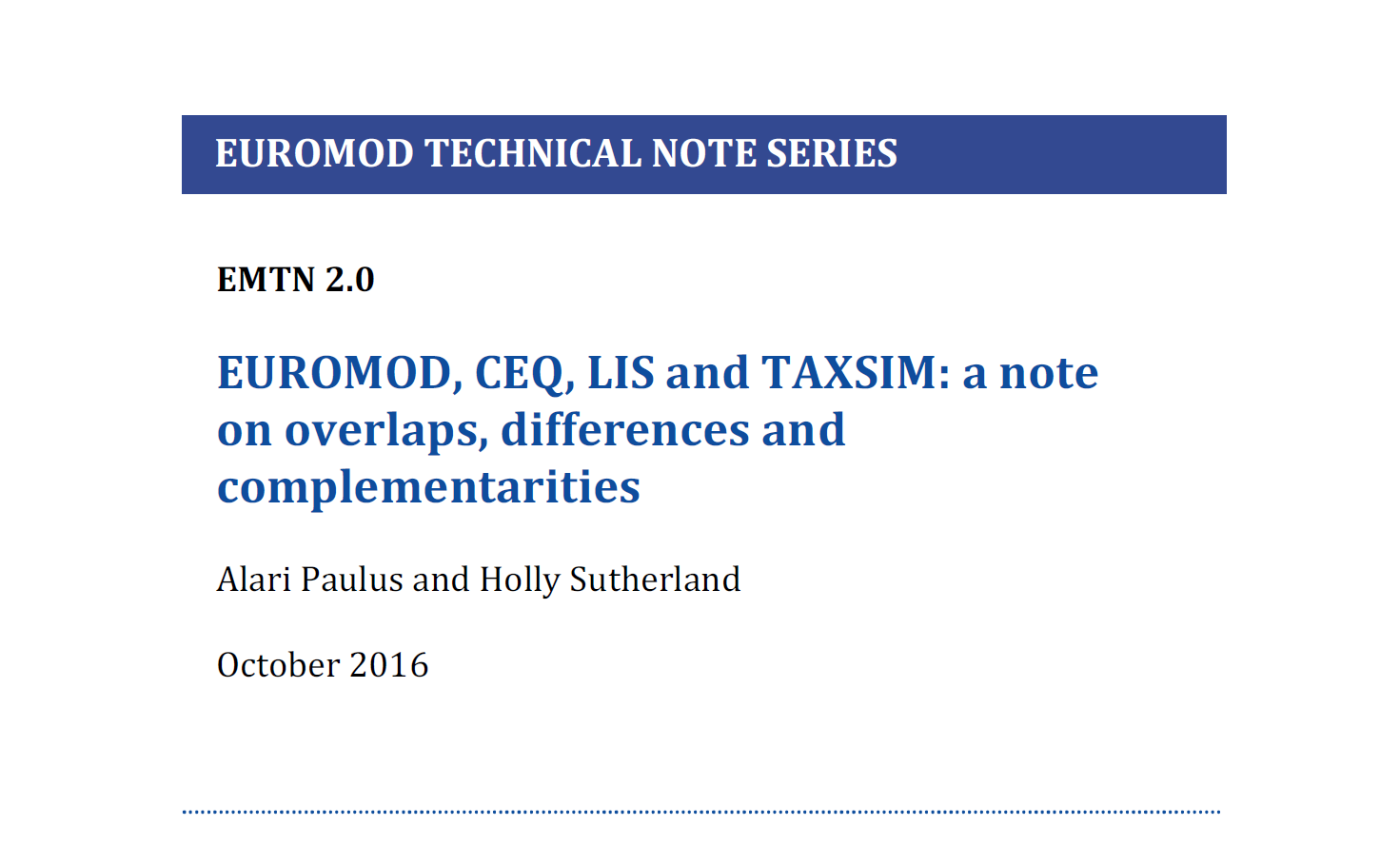 News Home » About » News Presentations, policy and projects at the workshop and annual meeting in Zagreb Hosted in June by the Institute of Public Finance in Zagreb, the EUROMOD user community enjoyed a two day workshop on Social Protection Policies and Microsimulation, followed by the closed EUROMOD Annual Project Meeting. Jul 10, 2017 Austrian media attention focuses on European Centre report A technical report by Vienna’s European Centre for Social Welfare Policy and Research received major attention in Austrian media and politics. Jul 10, 2017 New EUROMOD Technical Note series A new EUROMOD Technical Note series focuses on the technical development of the model. Jul 05, 2017 Announcing ISER's new Director: Professor Emily Grundy Professor Grundy, currently Professor of Demography at the London School of Economics, will join ISER as Director and Professor of Population Science in October Jul 01, 2017 New EUROMOD outputs provide updates to existing series Three new comparative statistical outputs have been released in Spring 2017, including the annual cross-country analysis of the effects of tax-benefit policy reforms in each EU member state. May 19, 2017 Ecuadorian government training for new microsimulation model for policy analysis Xavier Java has been in Ecuador, training government departments and national institutions to use a new microsimulation model, one of several created for developing countries that is based on EUROMOD as part of the SOUTHMOD project. Apr 25, 2017 EUROMOD analysis of economic and social policies in European Commission Country Reports New analysis of the socio-economic policies of 10 European countries, using EUROMOD, has been published as part of the annual cycle of reports by the European Commission. Feb 28, 2017 ECUAMOD moves closer with visit from IAEN colleagues At the end of November, ISER welcomed three visitors from Ecuador’s Instituto de altos estudios nacionales (IAEN) – Mauricio Cuesta, Marcelo Varela and César Amores – who are contributing to the final stages of developing ECUAMOD, a tax-benefit microsimulation model for Ecuador. Dec 19, 2016 « 1 … 11 12 13 14 15 … 18 »