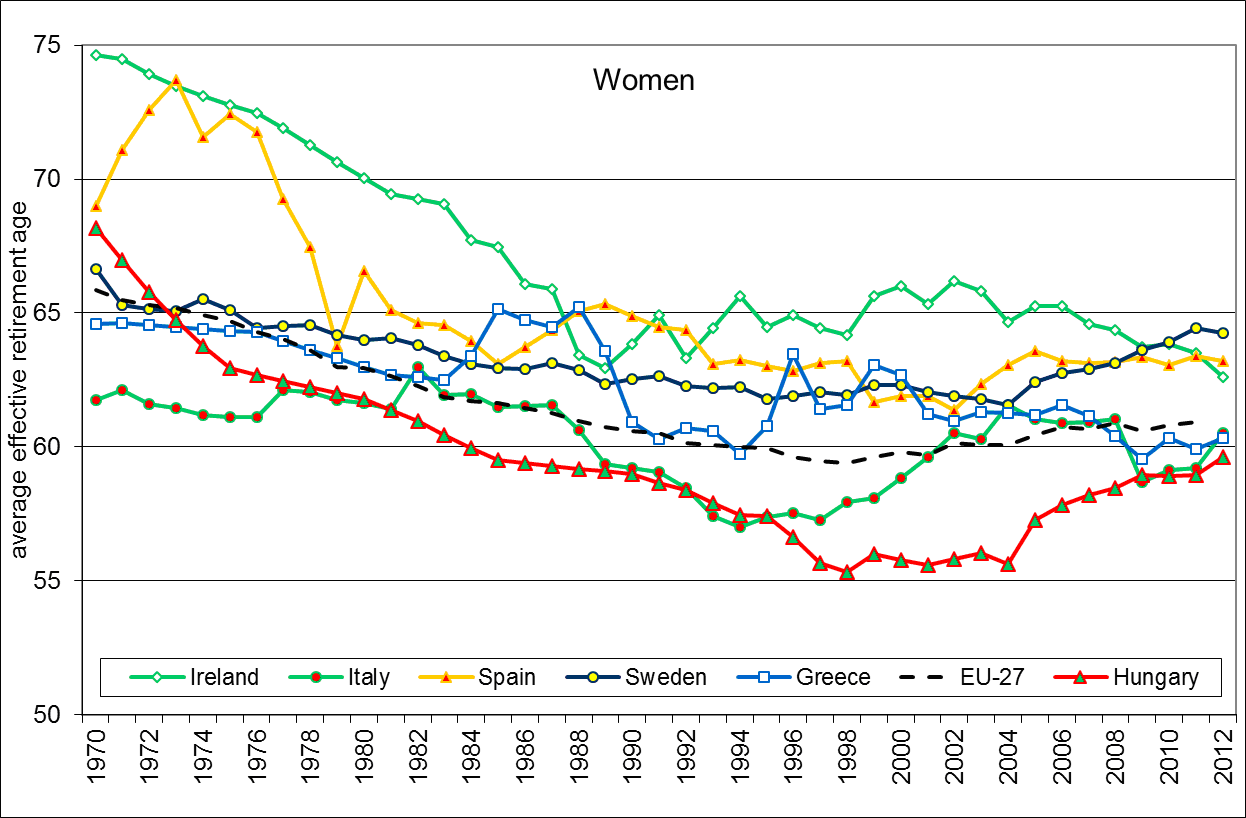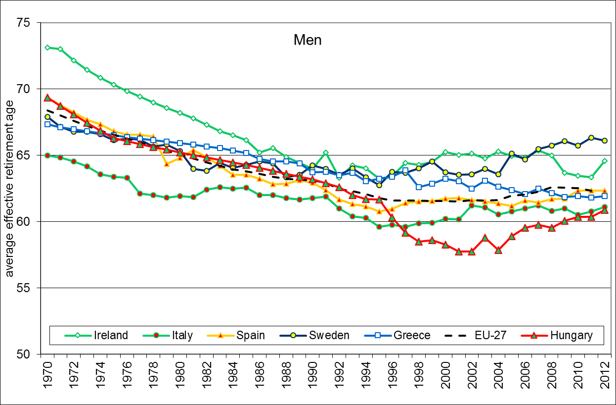 Figure: Average effective age of retirement. Source: Our computations on Oecd data.