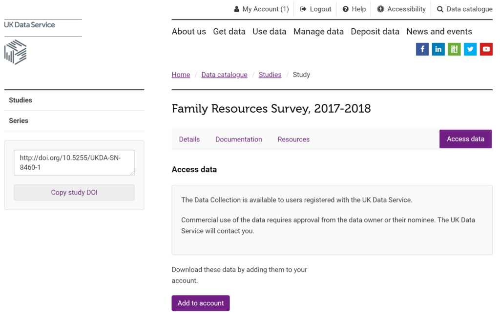 This is information added here for convenience. Users can also refer to the UKDS documentation and help pages. The process is simple, straightforward and quick. It is explained here in great details and at length to minimise misunderstandings. Please read the instructions below and follow them step by step.